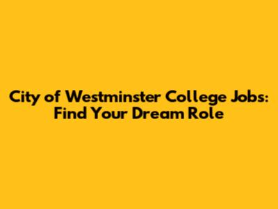 City Of Westminster College Jobs: Find Your Dream Role