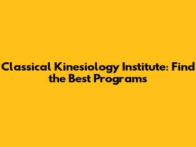 Classical Kinesiology Institute: Find The Best Programs