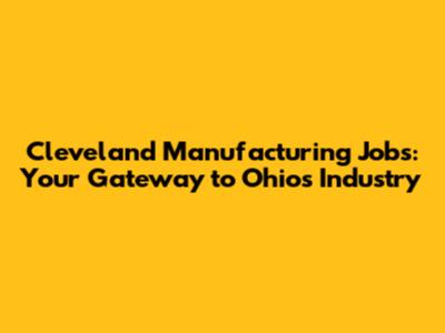 Cleveland Manufacturing Jobs: Your Gateway To Ohio's Industry