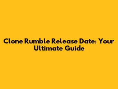 Clone Rumble Release Date: What We Know!