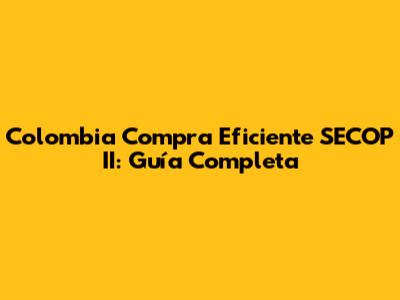 Colombia Compra Eficiente SECOP II: Guía Completa