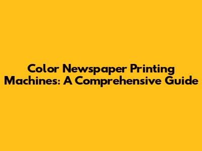 Color Newspaper Printing Machines: A Comprehensive Guide