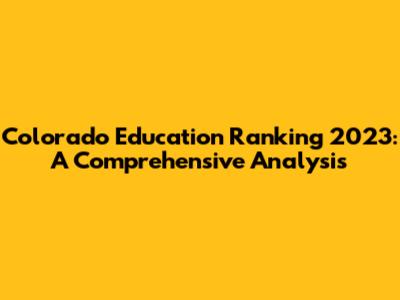 Colorado Education Ranking 2023: A Comprehensive Analysis