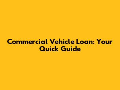 Commercial Vehicle Loan: Your Quick Guide