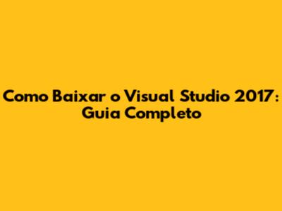 Como Baixar O Visual Studio 2017: Guia Completo