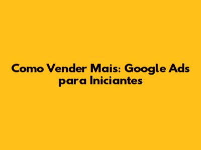 Como Vender Mais: Google Ads Para Iniciantes