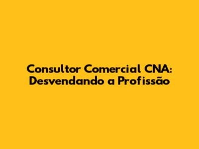 Consultor Comercial CNA: Desvendando A Profissão