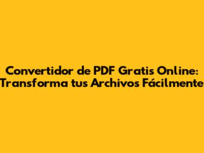 Convertidor De PDF Gratis Online: Transforma Tus Archivos Fácilmente