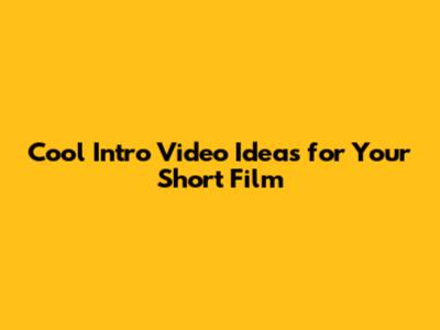 Cool Intro Video Ideas For Your Short Film