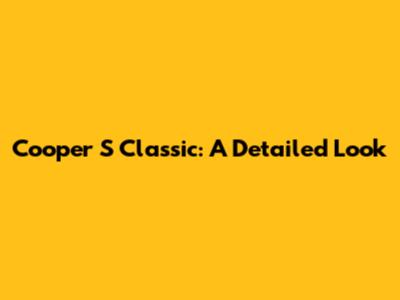 Cooper S Classic: A Detailed Look