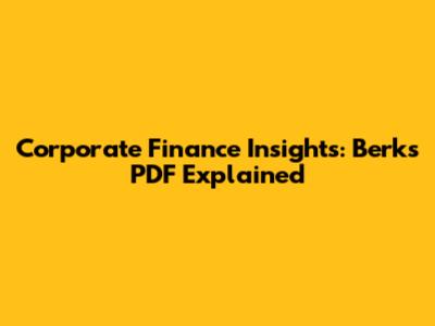 Corporate Finance Insights: Berk's PDF Explained