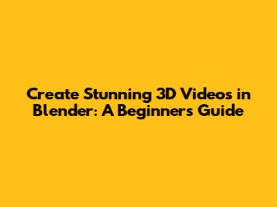 Create Stunning 3D Videos In Blender: A Beginner's Guide