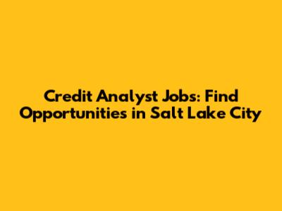 Credit Analyst Jobs: Find Opportunities In Salt Lake City