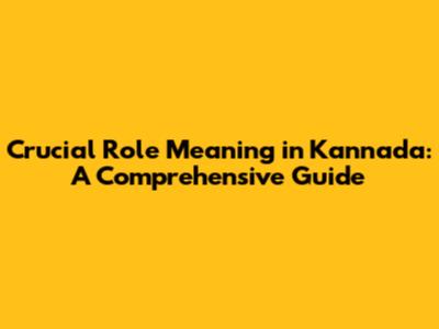 Crucial Role Meaning In Kannada: A Comprehensive Guide