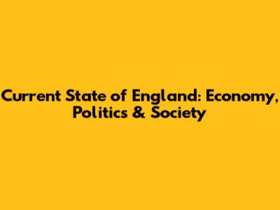 Current State Of England: Economy, Politics & Society