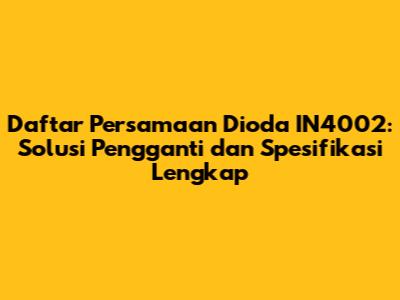 Dioda IN4002 adalah komponen elektronik yang sangat populer dan serbaguna. Kalian yang berkecimpung di dunia elektronika pasti seringkali bertemu dengan dioda ini. Nah, artikel ini kita akan membahas tuntas tentang persamaan dioda IN4002, mulai dari daftar pengganti yang bisa kalian gunakan, hingga detail spesifikasi teknisnya. Tujuannya? Agar kalian semakin paham dan bisa dengan mudah menemukan solusi jika suatu saat dioda IN4002 kalian rusak atau sulit ditemukan. Yuk, simak ulasan lengkapnya!