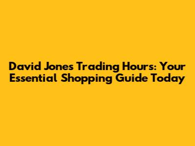 • What are the usual weekday trading hours for David Jones? Most David Jones stores are open from approximately 9:00 AM to 6:00 PM on weekdays, but this can vary. Some stores may have extended hours.