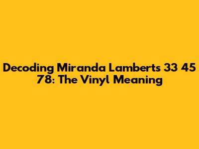 Decoding Miranda Lambert's 33 45 78: The Vinyl Meaning