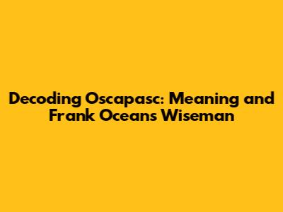Decoding Oscapasc: Meaning And Frank Ocean's Wiseman