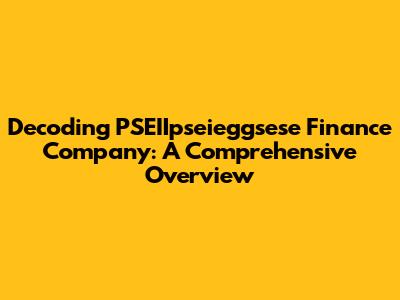 Hey guys! Let's dive deep into the world of PSEIIpseieggsese Finance Company. I know, the name might seem a little… well, unique. But trust me, understanding this financial entity is crucial for anyone looking to navigate the investment landscape. We're going to break down everything you need to know, from its core functions to its impact on the market. Get ready for a deep dive, and let's make sense of it all!