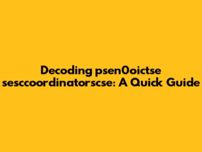 Decoding 'psen0oictse Sesccoordinatorscse': A Quick Guide