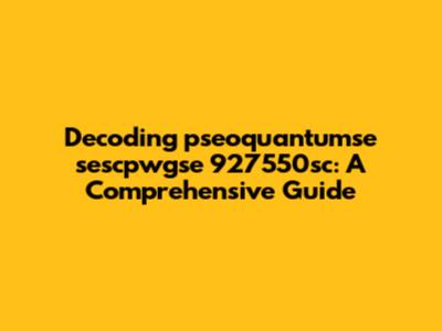 Decoding Pseoquantumse Sescpwgse 927550sc: A Comprehensive Guide