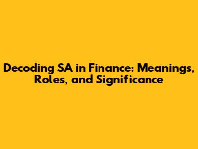 Decoding SA In Finance: Meanings, Roles, And Significance