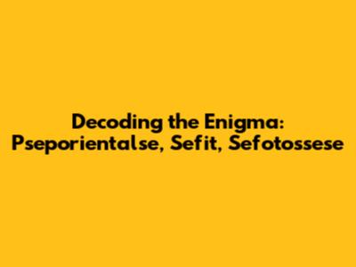 Decoding The Enigma: Pseporientalse, Sefit, Sefotossese