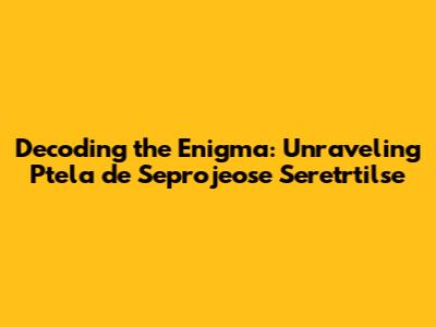 Decoding The Enigma: Unraveling Ptela De Seprojeose Seretrtilse