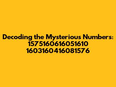 Decoding The Mysterious Numbers: 1575160616051610 1603160416081576