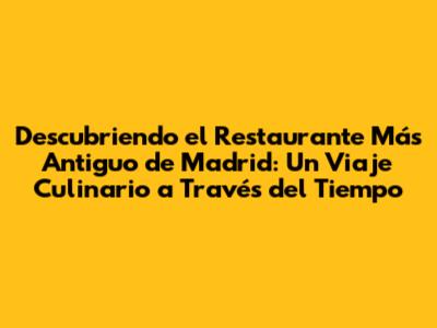 Visitar el restaurante más antiguo de Madrid es una experiencia que va más allá de la simple comida. Es una inmersión en la historia, una conexión con la tradición y una celebración de la gastronomía. Es un lugar donde el tiempo se detiene y donde cada bocado es un recuerdo. Ya sea que sean amantes de la historia, gourmets o simplemente busquen una experiencia única, el restaurante más antiguo de Madrid es un destino imprescindible. Anímense a descubrir este tesoro culinario, a disfrutar de sus sabores y a crear recuerdos inolvidables. La gastronomía madrileña los espera con los brazos abiertos, lista para ofrecerles un viaje que despertará todos sus sentidos.