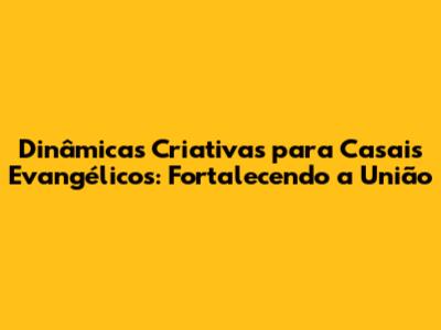Dinâmicas Criativas Para Casais Evangélicos: Fortalecendo A União