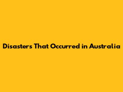 Disasters That Occurred In Australia