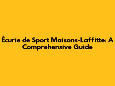 Hey guys, ever dreamt of the thrill of horse racing? Well, if you're in or around Maisons-Laffitte, you're in for a treat! This charming town is home to the Écurie de Sport, a fantastic spot for all things equestrian. Whether you're a seasoned bettor or just curious about the sport, this guide will walk you through everything you need to know about the Écurie de Sport in Maisons-Laffitte. Let’s dive in, shall we?