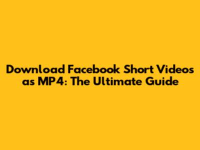 Download Facebook Short Videos As MP4: Easy Guide
