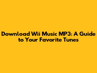 Download Wii Music MP3: A Guide To Your Favorite Tunes