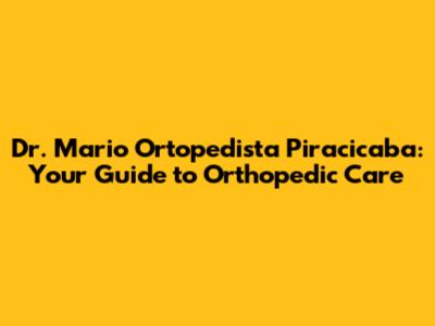 Hey there, folks! If you're looking for a top-notch orthopedic specialist in Piracicaba, you've probably stumbled upon the name Dr. Mario. Well, you're in the right place! This article is all about giving you the lowdown on Dr. Mario, his expertise, and why he's a go-to guy for orthopedic care in the region. We're going to dive deep into what he does, the conditions he treats, and what makes him stand out from the crowd. So, buckle up, and let's get started!
