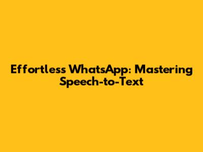 Effortless WhatsApp: Mastering Speech-to-Text
