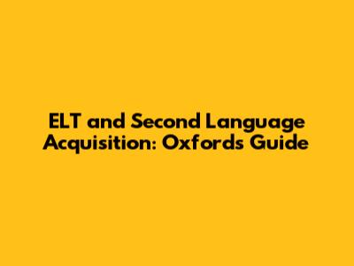 ELT And Second Language Acquisition: Oxford's Guide