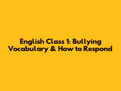 English Class 1: Bullying Vocabulary & How To Respond