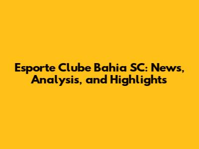Esporte Clube Bahia SC: News, Analysis, And Highlights