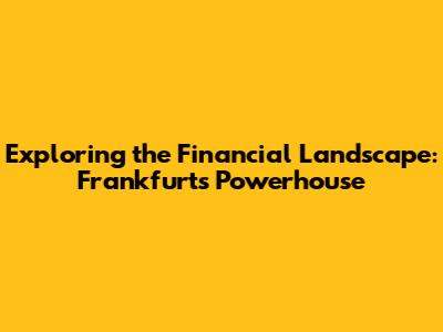 Exploring The Financial Landscape: Frankfurt's Powerhouse