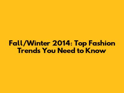 Fall/Winter 2014: Top Fashion Trends You Need To Know