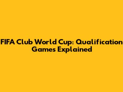 FIFA Club World Cup: Qualification Games Explained