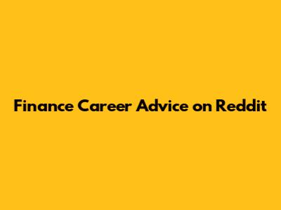 Finance Career Advice On Reddit