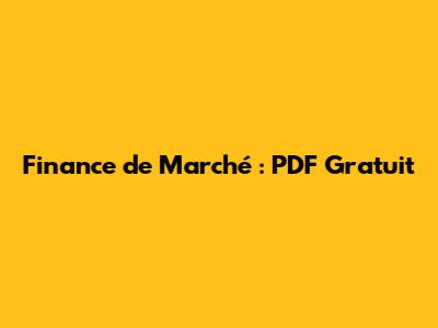 Finance De Marché : PDF Gratuit