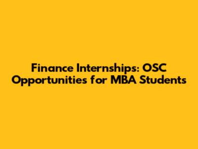 Finance Internships: OSC Opportunities For MBA Students