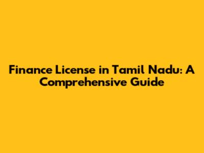 Finance License In Tamil Nadu: A Comprehensive Guide