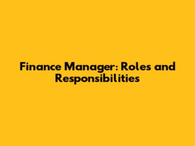 Finance Manager: Roles And Responsibilities