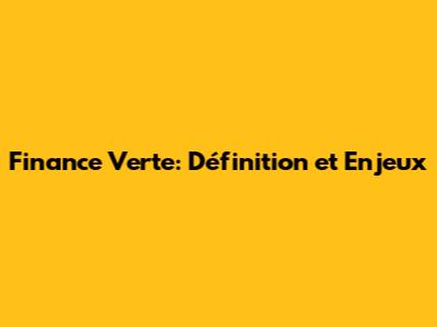 Les Enjeux Cruciaux de la Finance Verte